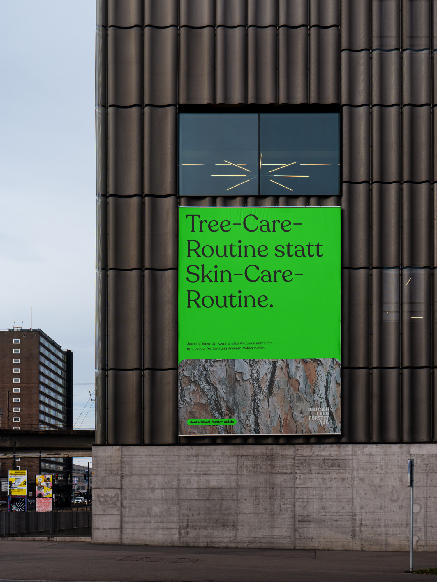 Deutschland forstet auf ist eine Plattform, die Forstleute, Waldbesitzende und Landwirt*innen mit freiwilligen Helfer*innen und Unternehmen vernetzt. Im Zuge eines Re-Designs für das soziale Netzwerk Instagram entstand ein visuell wie inhaltlich neu gedachter Auftritt. Man findet eine Mischung aus allgemeinen Informationen zum Thema Wald und Klimaschutz, Aufklärung über Arbeitsfelder von DFA sowie Animation zum Engagement. Durch den Einsatz einer akzentuierten Farbigkeit und einer spannungsreichen Schriftmischung zeigt sich der Instagram Account in einem frischen und zeitgemäßen Look and Feel.