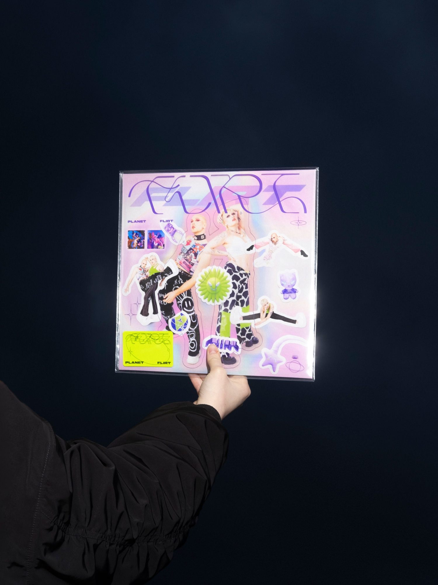Flirt ist ein queeres Pop-Duo aus Hamburg. Im Zuge des Album-Releases von Planet FLIRT entstand die Website und die Gestaltung der Vinyl. Im Mittelpunkt steht das Arbeiten mit unterschiedlichen Materialien, welche teils bedruckt, teils beklebt werden. Dieses gestalterische Spiel von verschiedenen Ebenen formt den einzigartig exzessiven Look, welcher durch den Einsatz einer ausgefallenen Schriftmischung und plakativen 3D-Elementen unterstützt wird. So gelingt es das Hörerlebnis der Musik des Duos auch visuell erfahrbar zu machen.