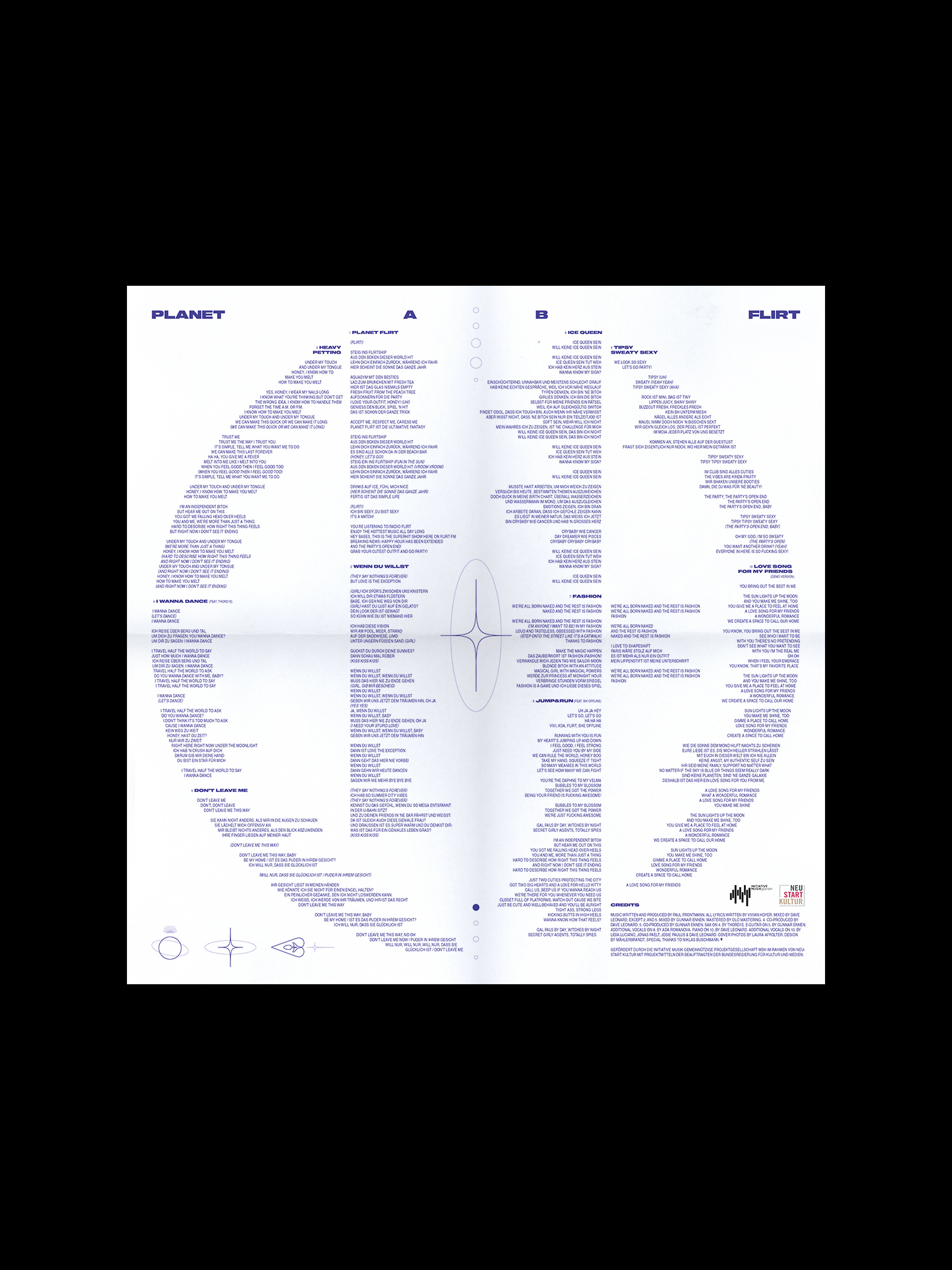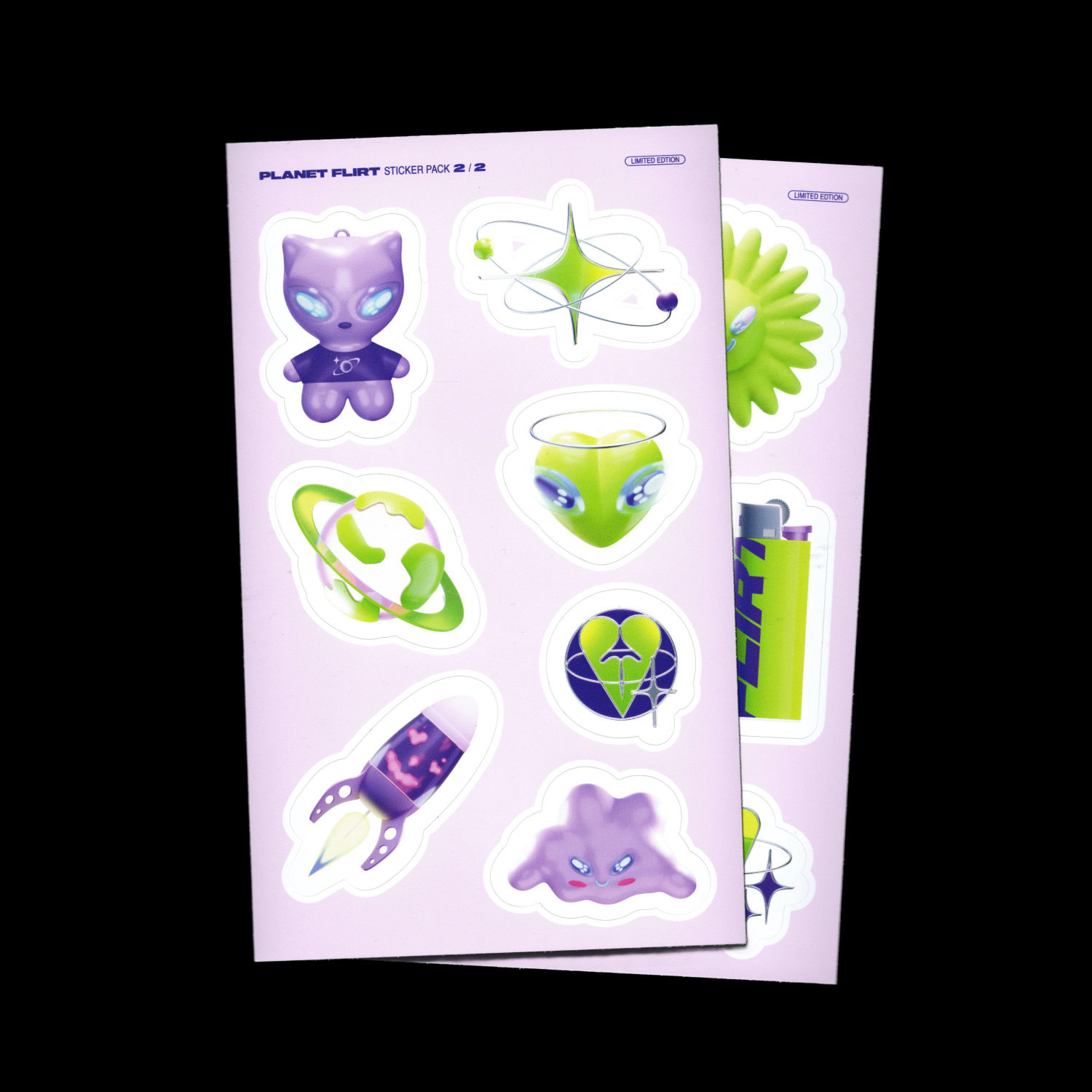Flirt ist ein queeres Pop-Duo aus Hamburg. Im Zuge des Album-Releases von Planet FLIRT entstand die Website und die Gestaltung der Vinyl. Im Mittelpunkt steht das Arbeiten mit unterschiedlichen Materialien, welche teils bedruckt, teils beklebt werden. Dieses gestalterische Spiel von verschiedenen Ebenen formt den einzigartig exzessiven Look, welcher durch den Einsatz einer ausgefallenen Schriftmischung und plakativen 3D-Elementen unterstützt wird. So gelingt es das Hörerlebnis der Musik des Duos auch visuell erfahrbar zu machen.